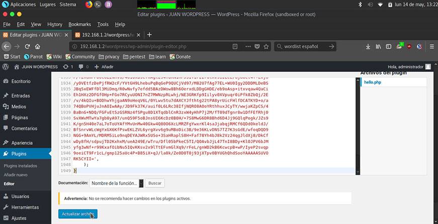 Llega el momento de aprovecharnos de una vulnerabilidad que para mi gusto considero bastante grave en Wordpress, y es la inyección de PHP.