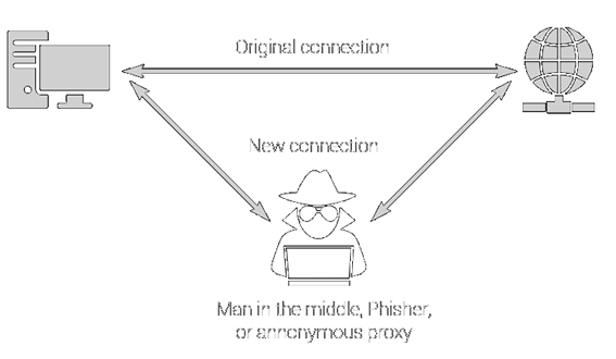 En HTTP es muy sencillo realizar una redirección de una página a otra sin que el usuario se percate, simplemente enviando una cabecera 301 al receptor, esto hacía muy sencillo complementar estos ataques con otro tipo de ataques conocidos como DNS Spoofing, en los que podíamos redirigir a nuestra víctima desde la página original de su banco, redes sociales etc... hacia una página clon albergada en un servidor malicioso, de manera que cuando ésta introdujese sus credenciales, el atacante podría robarlas, actualmente con HTTPS y HSTS, cuando una página trata de redirigirnos hacia otra no segura, recibimos un mensaje alertándonos como éste:
